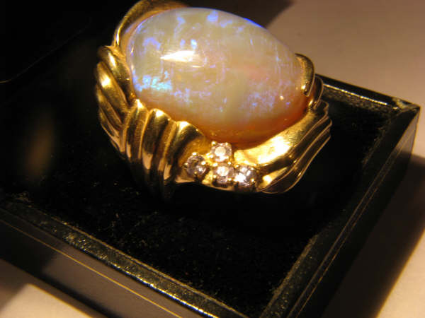 This is one of the largest and most powerful rings we have ever created. It is for the lover of outstanding jewelry. The Opal is from the 'Old Deep 4 Mile' field at Lightning Ridge where Herman spent over 9 years mining.